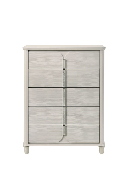 AcmeGenerous Storage: The Laveda Pearl White Finish Chest features five deep drawers providing ample space for storing clothes, linens, and other...