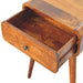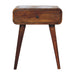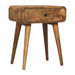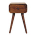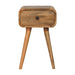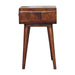 • Nightstand Solid Wood Avora with 1 drawer Artisan Furniture - Combining mid-century elegance with practical design, this bedside table is handcrafted from 100% Solid Mango Wood in a warm finish. Featuring a single drawer with a subtle knob for discreet storage, it rests on tapered Nordic-style legs that add a touch of retro charm. Perfectly sized for smaller spaces, this piece offers functionality and style, making it an ideal addition to bedrooms or living areas. Its handmade, sustainable craftsmanship and natural wood grain ensure that no two pieces are exactly alike, giving your home a unique and timeless accent.