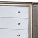 • Mirrored Drawer Fronts: The drawers have mirrored fronts that reflect light, creating a radiant effect, while full-extension side metal glides ensure smooth and effortless operation.