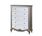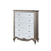 • Elegant Design: This Antique Champagne chest combines luxury and sophistication, featuring five beautifully designed drawers that merge style and practicality.