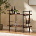 Modern Industrial Bar Cart With Shelving And Rolling Casters - Walnut