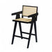 Modern Minimalist Bar Stool With Cane Seat - Black / Natural