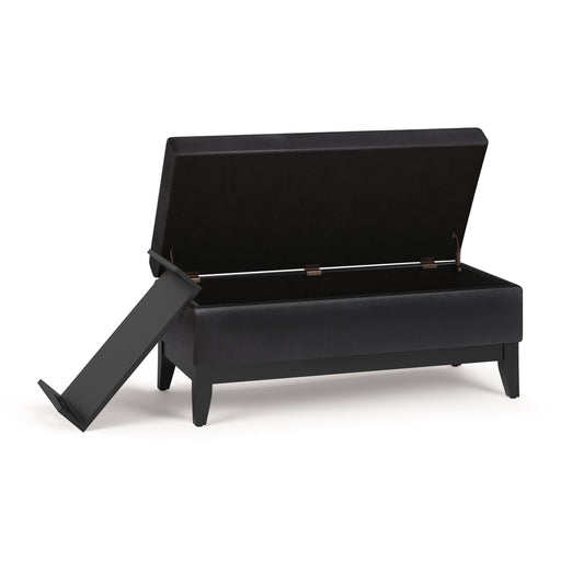 Simpli-HomeHand constructed using solid wood, engineered woods and high density foam Upholstered in a durable Vegan Faux Leather Features large interior stor...