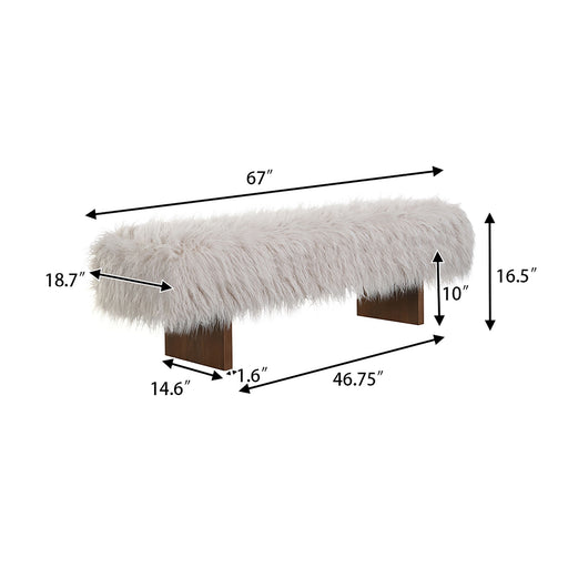 Long Haired Faux Wool Bench - Brown / Beige