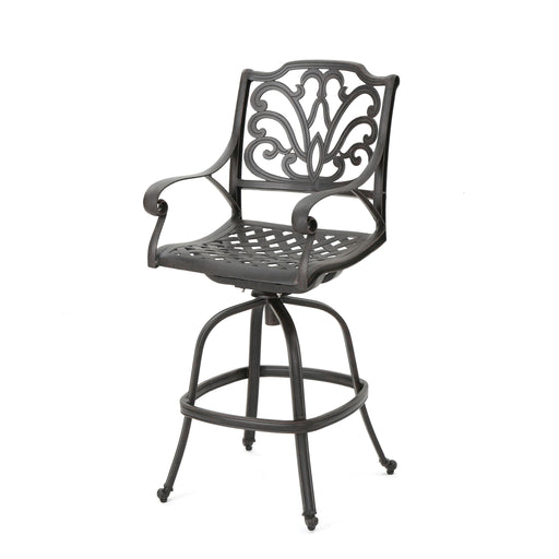 Noble HouseDurable Construction: Crafted from powder-coated cast aluminum, this barstool is designed to withstand outdoor weather while maintaining its prist...