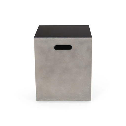 Outdoor Lightweight Concrete Square Fire Pit 40, 000 Btu With Built In Tank Storage - Dark Gray