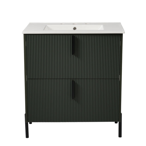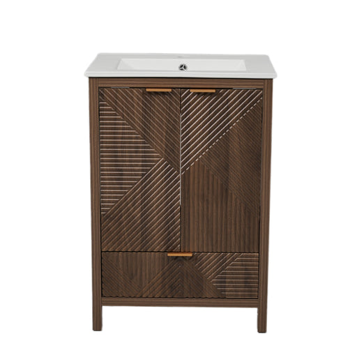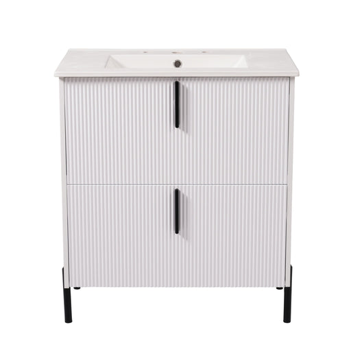 Fluted Bathroom Vanity With Ceramic Sink, Freestanding Cabinet