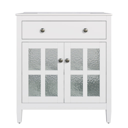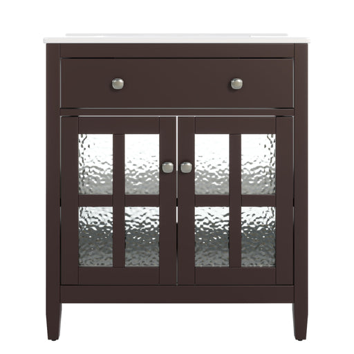 Modern Bathroom Vanity With Ceramic Sink, Tempered Blurred Glass Doors