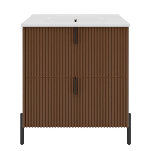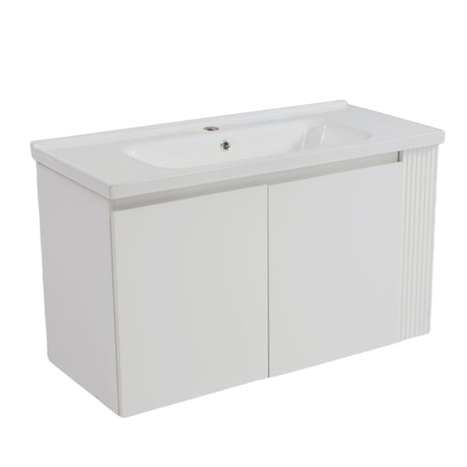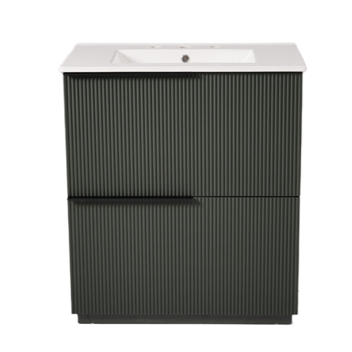 Fluted Bathroom Vanity With Ceramic Sink, Soft Close Slides