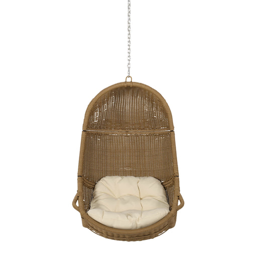 Outdoor / Indoor Wicker Hanging Chair With 8Ft Chain - Light Brown / Beige