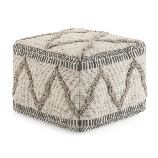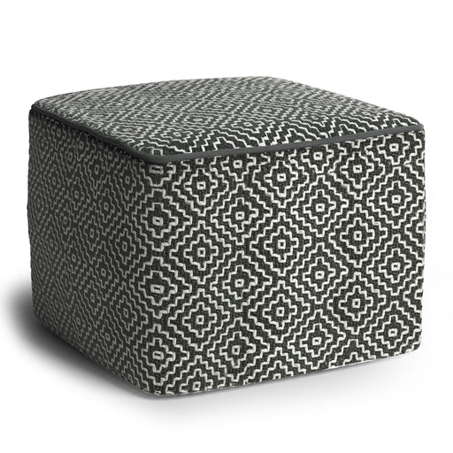 Simpli-HomeDIMENSIONS: 18" D x 18" W x 14" H Upholstered in a hand woven wool Black Melange, White pattern Constructed using 100% wool, Polystyrene Filling S...
