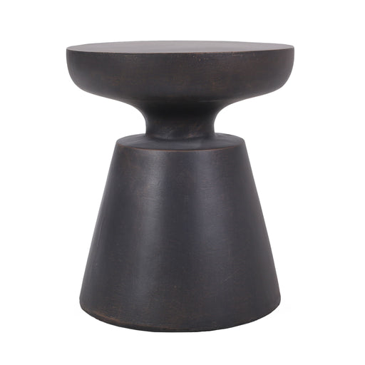 Outdoor Lightweight Concrete End Table With Natural Texture - Matte Black