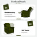 360 Degrees Swivel Recliner Manual Rocking With Adjustable Backrest For Living Room - Green