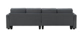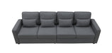 4 Seater Modern Linen Sofa With Armrest Pockets And 4 Pillows, Minimalist Style Couch - Dark Gray