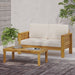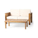 Outdoor Wooden Set With Loveseat, Coffee Table And Water Resistant Cushions - Teak / Cream