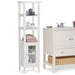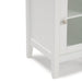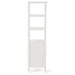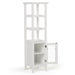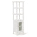 • Features one (1) door with one (1) adjustable interior shelf and three (3) open shelves. Brushed nickel hardware