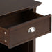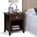 - Features one (1) spacious drawer with metal drawer glides and open bottom storage area