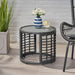Achill - Outdoor Modern Boho Wicker Side Table With Glass Top - Gray
