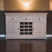 • Solid Wood Acid Wash Wine Storage Unit - Discover our Acid Wash Wine Storage Cabinet, a perfect blend of sustainability, style, and functionality. Crafted with care, this piece brings a touch of vintage charm to your modern home. It has storage options with 3 drawers + 2 cabinets, and 12 bottle slots. Perfect to add in a dining room or hallway.