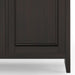 • Transitional design includes tapered legs, panel framed door fronts, and antique bronze round decorative knobs
