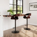 • Features sturdy black powder coated base with 360 degree swivel and footrest. Seat Adjusts from bar to counter height with gas lift