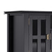 - Features a large centrally located open area with one (1) flip down drawer, one (1) pull out drawer as well as four (4) storage spaces with tempered glass doors.