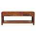 - Aspen Media Unit - Discover the Aspen Media Unit: a piece expertly crafted from 100% solid mango wood in a lush chestnut finish. Designed with smooth corners for added safety and a contemporary flair, it seamlessly fits into a variety of interior decor styles. Offering ample storage and a sleek aesthetic, the Aspen Media Unit is the perfect addition to any living area, ideal for organizing media components and displaying your favorite decorative pieces. A durable investment that enhances the functionality and style of your home.