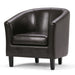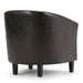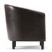 - Features curved back, sides with top stitching detail, dark brown solid wood legs and removable high density foam seat cushion