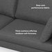 • The generously sized sofa for 3 features 2 wide seat cushions with high-density foam cores and feather/fiber toppers wrapped in high-quality polyester, plus 2 thick back cushions 2 large throw pillows filled with feathers and fiber for a soft, comfortable feel.
