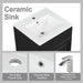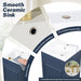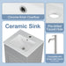 - Ceramic Sink: Designed with a smooth, water-proof ceramic finish, the sink is resistant to water stains and features a pre-drilled hole on the top which is available to single hole faucet (not included)