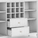 - Features two (2) central drawers with metal glides, two (2) side doors that open to large storage spaces with two (2) shelves each and a twelve (12) bottle wine storage rack.