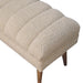 • Artisan Furniture Solid Wood Cream Boucle Puffer Bench - Elevate your living space with our chic Cream Boucle Puffer Bench. Featuring a curved top design and luxurious boucle upholstery, it adds an elegant touch of opulence. Place it in your living room or hallway for a stylish statement in any contemporary setting.