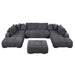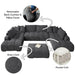 • Contemporary Design: This modular sectional sofa features a modern design that includes a matching ottoman and color-coordinated toss pillows, adding a stylish touch to any living space.