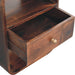 - Curve Drawer Nightsand - This solid wood nightsand has been constructed from 100% solid mango wood in an finish and offers a nice rounded look on the edges. It features 2 drawers which come with a shiny knob and open slots for extra storage. A great simple and addition to the bedroom.