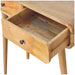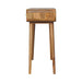 - Oak-ish Curved Hallway Table - This simple, elegant console table has beautifully curved edges to fit perfectly in any living space, this 100% solid mango wood unit has been built with sustainably sourced timbers and has two drawers to help you keep your home organized by storing away any little household objects. It has shiny knobs and has a fine oak-ish finish with 4 Nordic style legs.