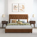 Donald - Mid-Century Modern Velvet Platform Bed Queen - Cognac