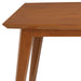 - Supporting the tabletop are robust, solid rubberwood legs that are angled and tapered with a rounded-square shape, and an inset table apron that adds a refined touch.