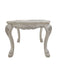 - Elegant Design: The square end table features a traditional style with a wooden scalloped top and apron, adorned with raised floral motifs, and oversized claw legs, providing a vintage hand-brush finish that enhances any room's decor.