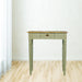 - Hand Painted Writing Desk - This one drawer writing desk is constructed from 100% solid mango wood and has a french grey hand-painted base and a stained oak-ish top. Other features include hand-carved flute legs to add to the vintage French style and a shell handles for easy access into the drawer. The perfect addition to any home.