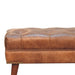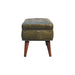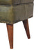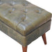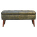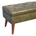 - Harbour Bench - Inject character into your living space with this modern green bench. The legs are constructed from 100% solid mango wood in a chestnut finish and the seat is upholstered in olive green buffalo leather with a deep button design, this piece will offer relaxation, making it both comfortable and beautiful in the home.