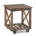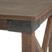 • Industrial, rustic design includes a sturdy frame featuring iron corner brackets with rivets