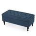 Hyatt - Suede Storage Ottoman With Tufted Top And Dark Wooden Legs - Navy Blue