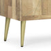 - Hand finished with a Natural wood finish and a gold finished solid brass metal inlay