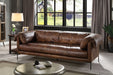 - Luxurious Leather: The Jaron Macho Sofa is upholstered in mocha-colored top grain leather, adding elegance and warmth to any living space.