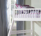 - Safety Features: The bed includes a right-facing front ladder for easy access and a full-length slatted guardrail with a height of 16" for added safety on the top bunk.