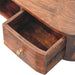 - Artisan Furniture Solid Wood Lunar 2 Drawer Floating Console - This wall-mounted console has been constructed from 100% solid mango wood in a chestnut finish and offers a unique shaped design with rounded edges. It can be easily mounted on the wall without the fuss of legs. It also features an open slot and 2 drawers perfect for storing any bits and pieces and keeping them close before bedtime.