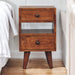 • Mini Classic Multi Nightstand - Obtain an effortless look with our Mini Classic Bedside. It is constructed from 100% solid mango wood and the sleek design is complemented by shiny brass knobs and nordic style legs as well as 2 drawers and an open slot. The perfect piece to use alone or pair with different styles and finishes of furniture. This petite product is part of Recession Collection.