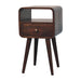 - Mini Curve Open Nightstand - The mini version, this small but handy bedside makes a perfect stand for nibbles, drinks, or a lamp. It will prove handy all over your home and is made from 100% solid mango wood in a fine finish. It has curved edges which will fit into any home/living space. It also comes with 1 drawer, 1 open slot and 4 Nordic style legs. This petite product is part of Recession Collection.