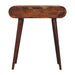 • Mini Round Chestnut Fold Vanity - Add this mini dressing table to your bedroom. Constructed from 100% solid mango wood in a chestnut finish with 1 drawer it features Nordic-style legs, a foldable mirror, and storage compartments for storing any bits and pieces such as jewellery and makeup. This is a lovely and versatile piece that will complement any room beautifully. This petite product is a part of Recession Collection.