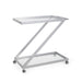 Modern Z Shaped Bar Cart With Tempered Glass Shelves - Silver